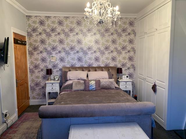 Carpet to the floor, feature wallpaper wall, central light, rear facing PVCu window with window seat, ample power points and T.V.pont.