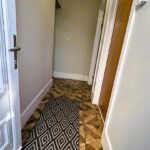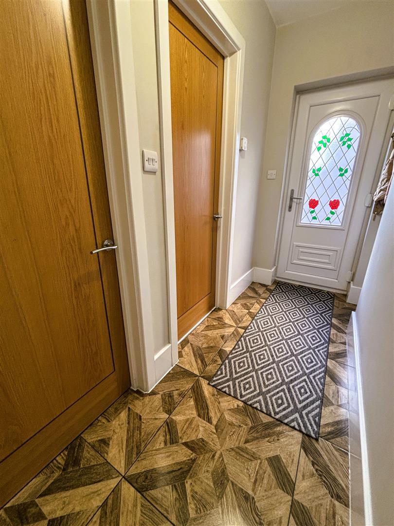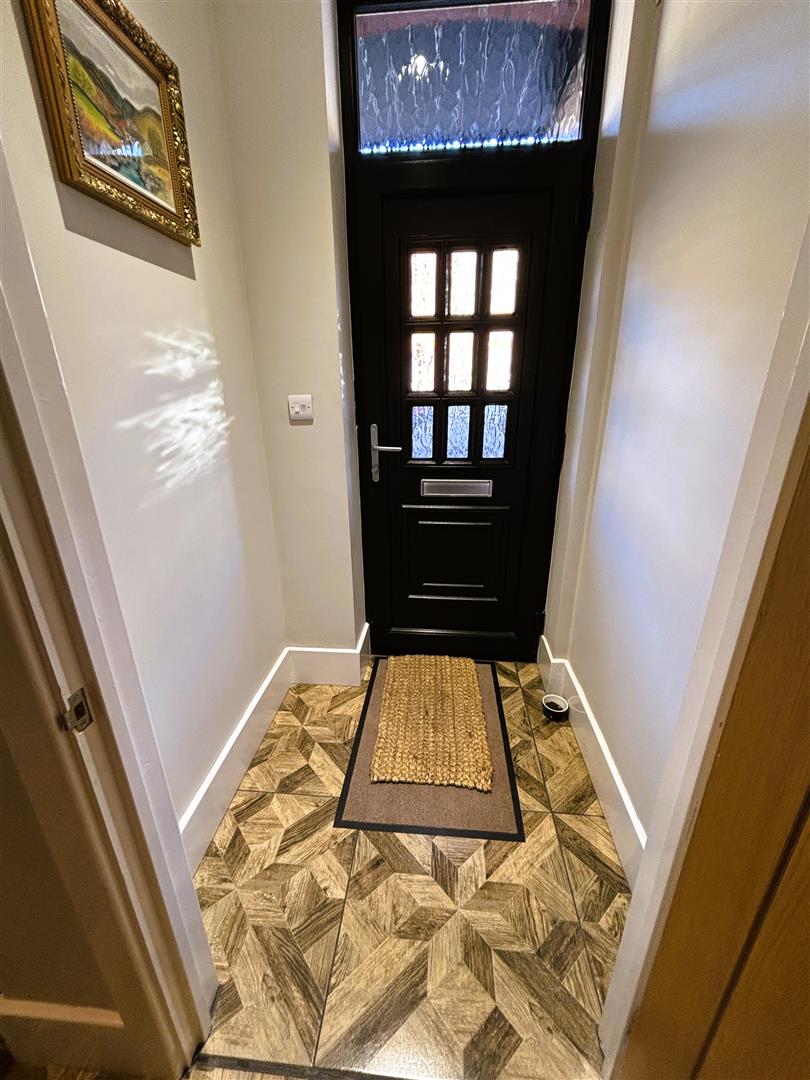 Through from kitchen to inner hallway. Plaster painted walls and ceiling, central light, ceramic floor tiles, underfloor heating. Alcove for storage. Upvc double glazed rear door.