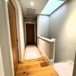 Stairs leading to first floor, wooden banister to stairs and landing. Large storage cupboard. Carpet to stairs, laminate to landing area. Skylight window. Access to attic.