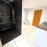 Upvc double glazed window to rear. Plaster painted walls and ceiling, spot lighting. Fully tiled double shower, glass doors, jet powered with rainwater overhead shower. Low level w.c, wash hand basin. Ceramic floor tiles, underfloor heating.