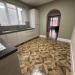 Upvc double glazed window to side. Range of wall and base units, laminate work surface. Wall tiles in between units. Integrated electric oven, induction hob, extractor fan, integrated fridge freezer, stainless steel sink with mixer taps. Plaster painted walls and ceiling, central light. Ceramic floor tiles, underfloor heating. Space for kitchen table and chairs.