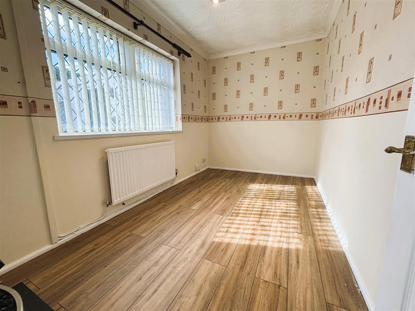 Upvc double glazed window to side. Papered walls, artex ceiling, central light, radiator, laminate flooring.