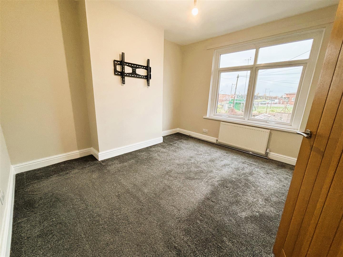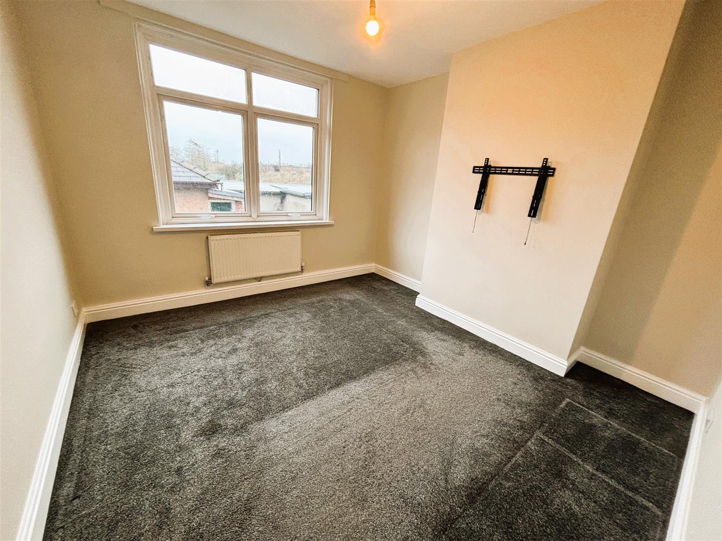 Upvc double glazed window to front. Emulsion painted walls and ceiling, central light, carpet. Wall mounted t.v bracket.