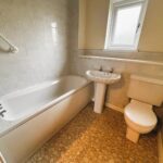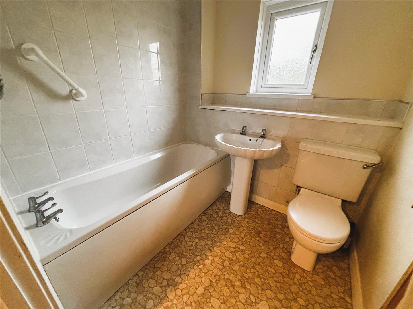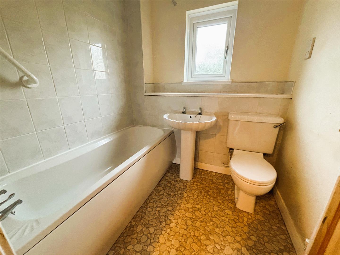 Upvc double glazed window to rear. Emulsion painted walls and ceiling, central light. Tiled over bath, sink and toilet area. Shower over panelled bath, low level w.c, wash hand basin, radiator, laminate flooring.