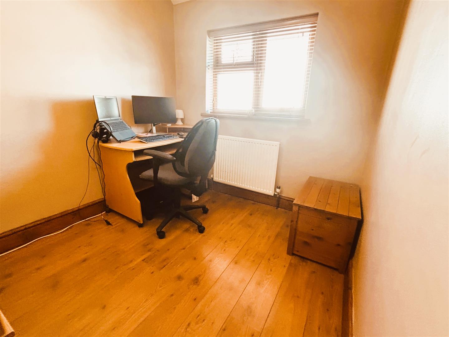 Upvc double glazed window to rear, venetian blind. Emulsion painted walls and ceiling, central light, radiator, laminate flooring.