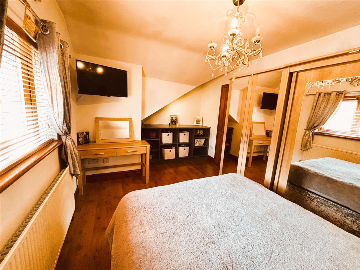 Upvc double glazed window to front and rear, venetian blind. Emulsion painted walls and ceiling, central light, radiator, carpet. Fitted wardrobes, walk in storage area.